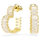 Fall in love with these romantic heart-shaped pierced earrings. The design is gold-tone plated and features a full set of bright pink baguette-cut Swarovski Zirconia. A modern and brilliant take on a classic hoop.